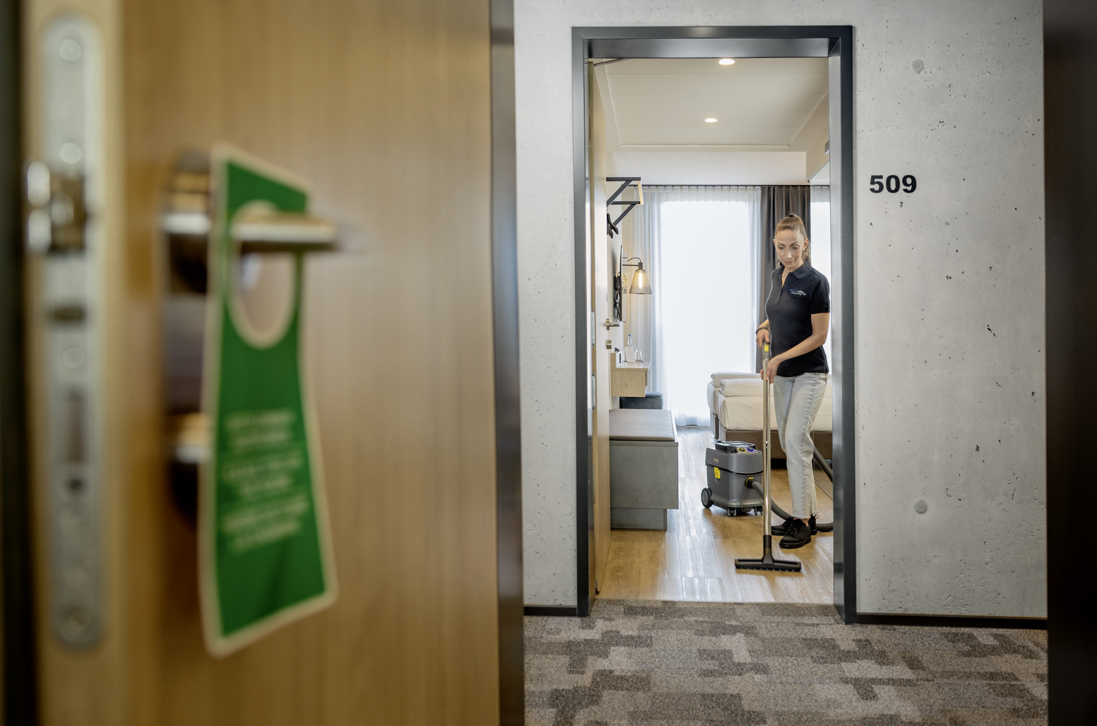 Ideal für Hotels, Restaurants, Einzelhändler und Gebäudereiniger. Der Akku-Staubsauger T 15/1 Bp von Kärcher überzeugt durch Nachhaltigkeit, Langlebigkeit und ein attraktives Preis-Leistungs-Verhältnis. Er zeichnet sich durch seine Robustheit, seine Zubehörausstattung und seine hervorragende Saugleistung dank der leistungsstarken Kärcher Battery Power+ Akkus (36 V) aus. Der Anteil von 45 % Recyclingmaterial* in der Herstellung schont Ressourcen und reduziert den Energiebedarf. Der leistungsstarke T 15/1 Bp zeichnet sich durch einen niedrigen Geräuschpegel von nur 57 dB(A) aus und kann daher jederzeit auch an lärmempfindlichen Orten eingesetzt werden. Der kompakte Staubsauger ist wendig und hat ein Fassungsvermögen von 15 Litern. Er ist mit einem ergonomischen Tragegriff ausgestattet und lässt sich einfach und mühelos nah am Körper transportieren. Außerdem ist er äußerst robust, mit einem Zubehörfach, Stoßfängern und großen Rädern ausgestattet. Ein hocheffizienter HEPA-14-Filter ist ebenfalls erhältlich. Bitte beachten Sie bei der Bestellung, dass der Akku und das kompatible Schnellladegerät separat bestellt werden müssen.